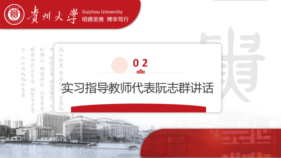实习指导老师代表阮志群讲话,希望同学们在实习岗位发挥金沙集团1862cc成色不怕苦不怕累的传统和不耻下问的精神,充实自己的实习经历,期待同学们实现全顺利圆满。