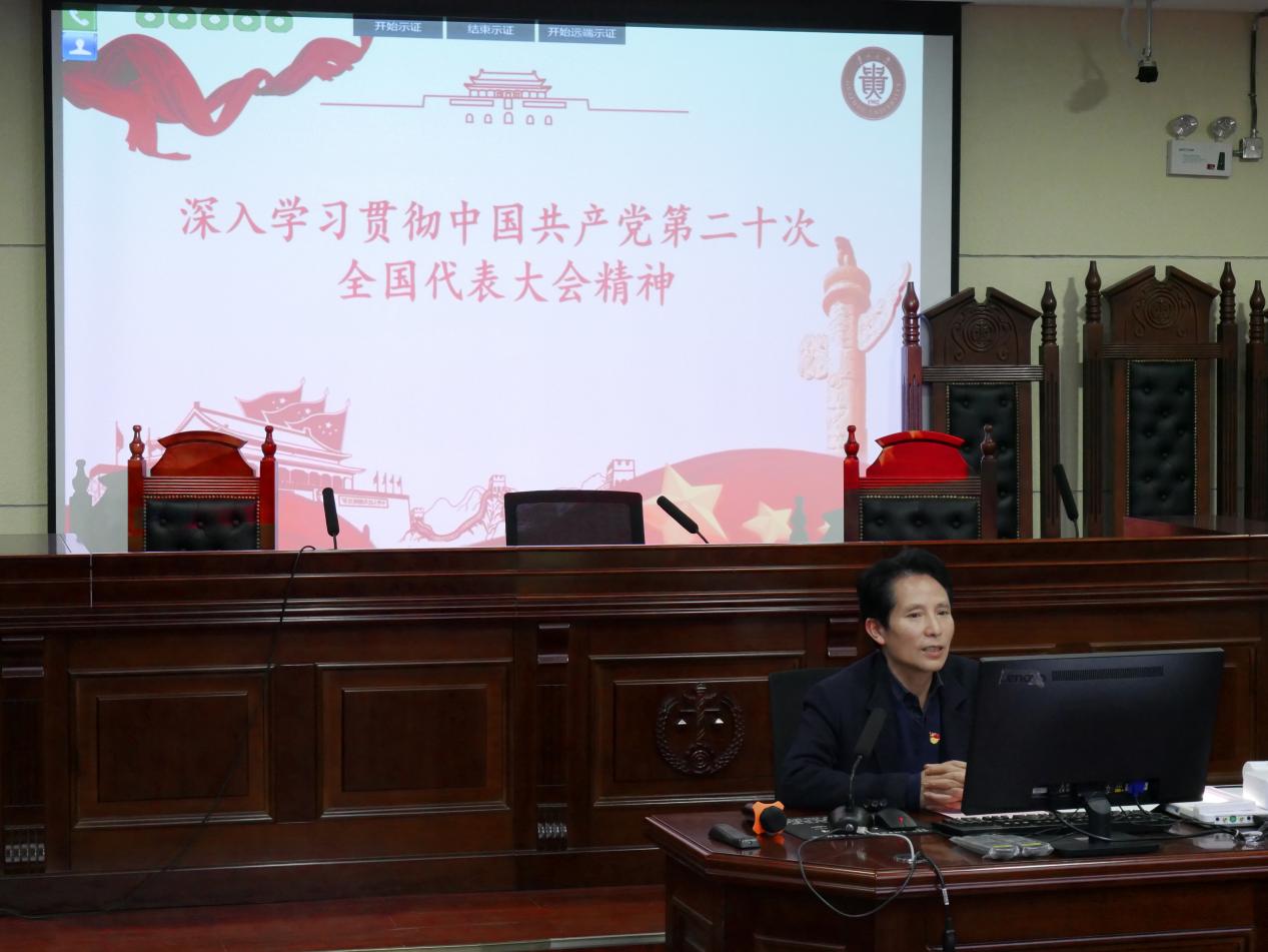 为深入学习宣传贯彻党的二十大精神,把全院师生的思想统一到党的二十大精神上来,把力量凝聚到党的二十大确定的各项任务上来,切实加强我院师生思想政治教育,筑牢师生理想信念根基,3月22日下午,我院2023学年度春季学期“书记第一课”在东校区慎思楼模拟法庭开讲。石明昌书记做题为《深入学习贯彻中国共产党第二十次全国代表大会精神》的专题党课。我院党委副书记岳莹、副院长宁立标、副院长孙志煜、学生科负责人以及学院各支部、各班级的学生代表参加。