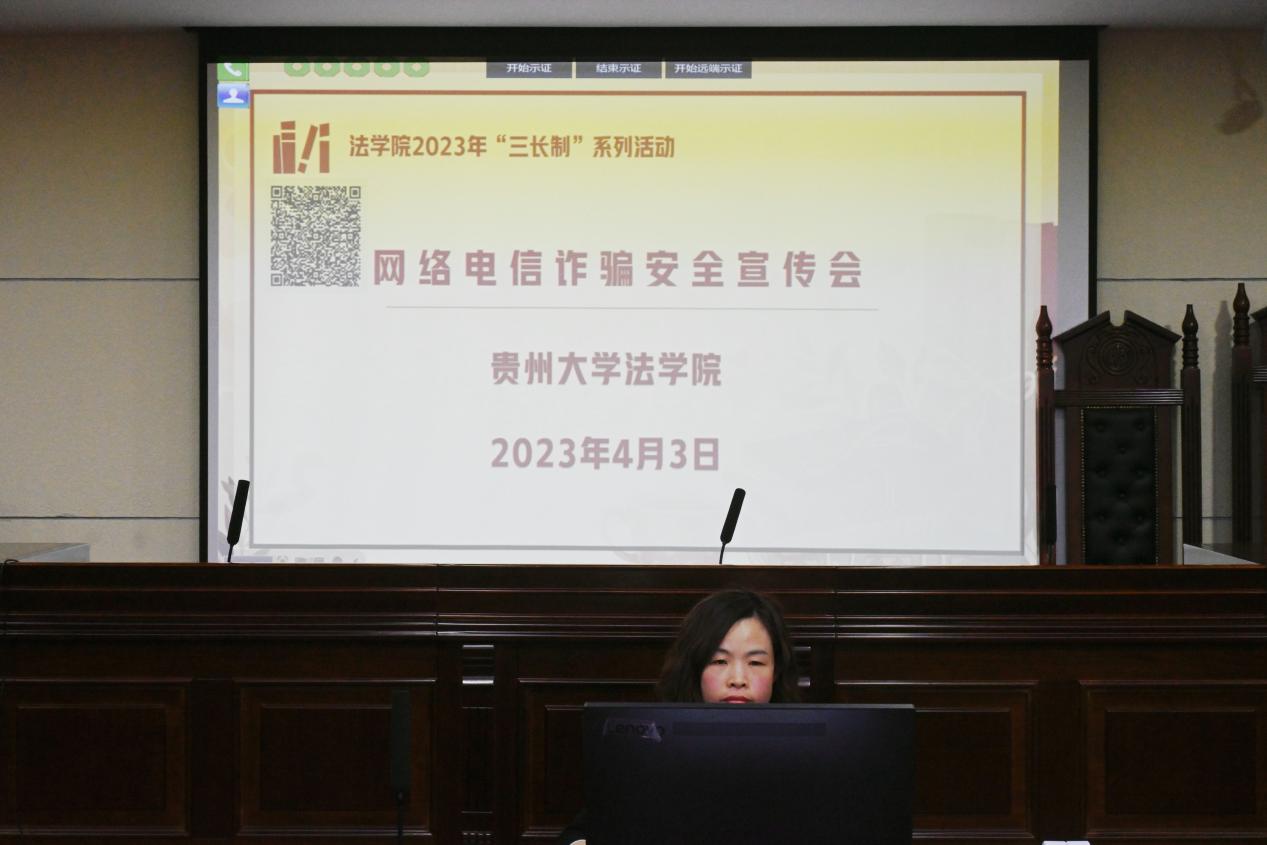 为增强学生网络安全意识、防止网络电信诈骗进入校园,4月3日,金沙集团1862cc成色在慎思楼模拟法庭召开网络电信诈骗安全宣传会。
