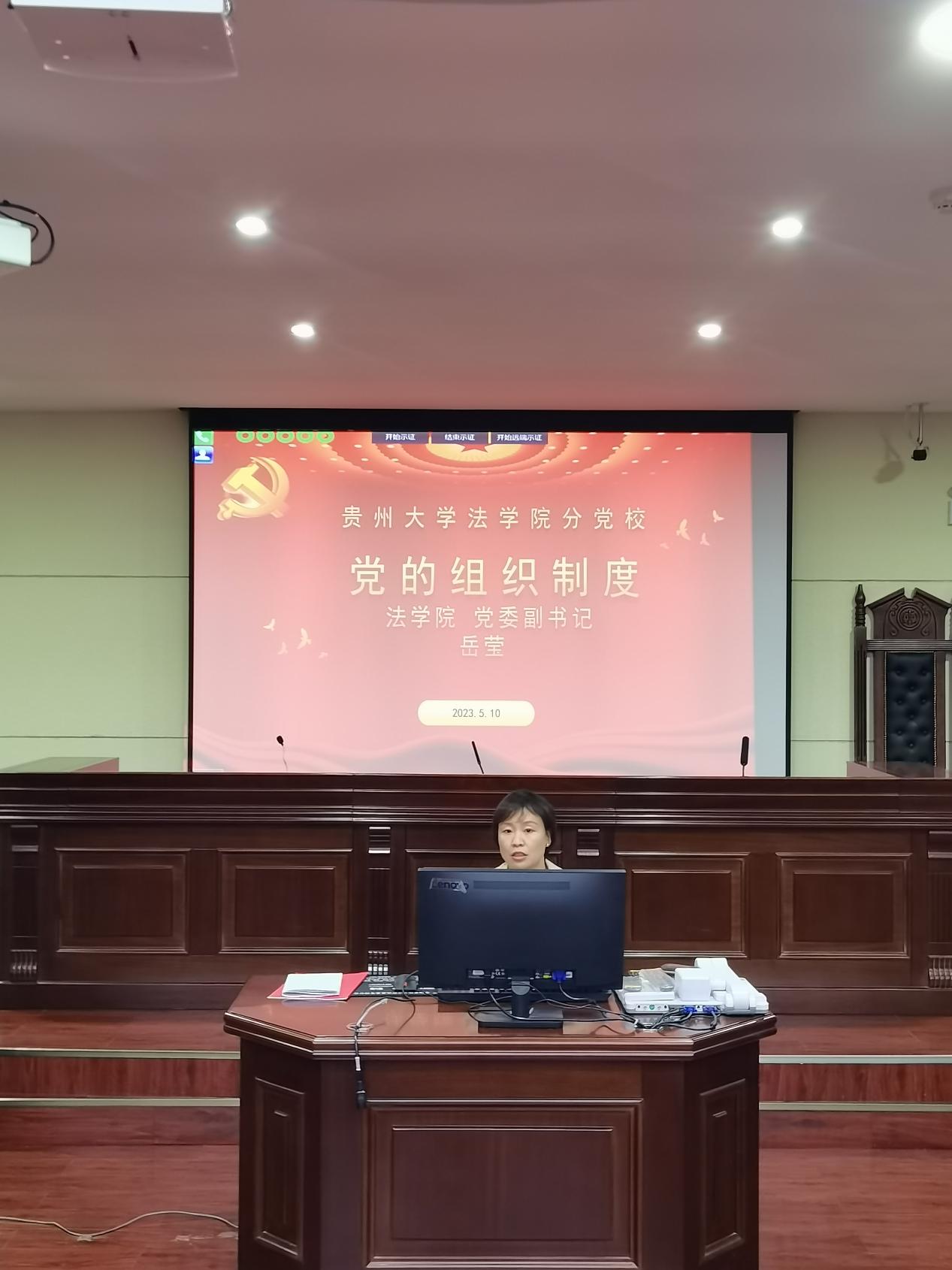 2023年5月10日中午,第三十八期入党积极分子党课在模拟法庭举行。主讲人为我院党委委员、副书记岳莹。