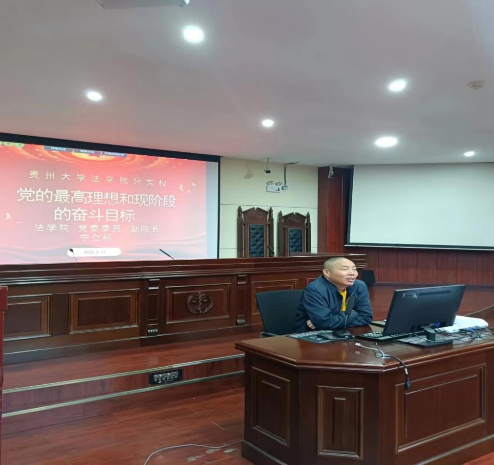 2023年5月11日中午,第三十八期入党积极分子党课在模拟法庭举行。主讲人为我院党委委员、副院长宁立标。