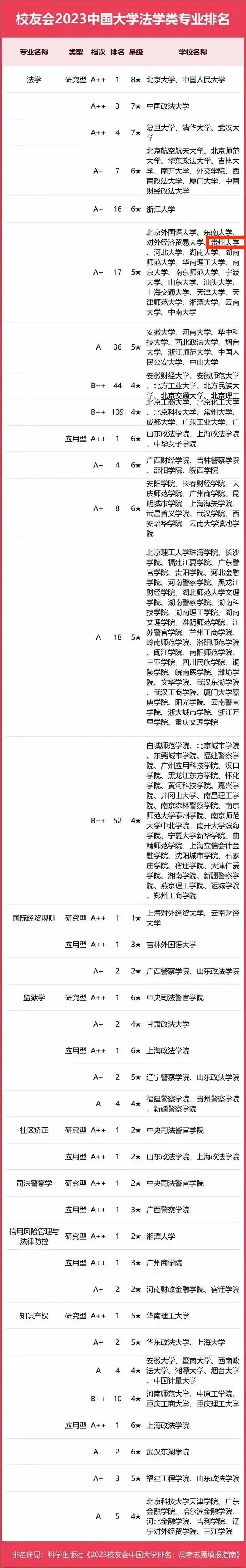 最近,全国第三方大学评价机构艾瑞深校友会发布的《2023校友会中国大学排名:高考志愿填报指南》中,最新发布校友会2023中国大学一流专业排名、2023中国大学各专业类专业排名,贵州大学法学在全国排名17位,获得A+的好成绩!这是继2022年教育部公布的第五轮学科评估中进入B档次,在2022全国700多所我院系学科软科排名中排名58位,位居A层次后的又一次新的突破。
