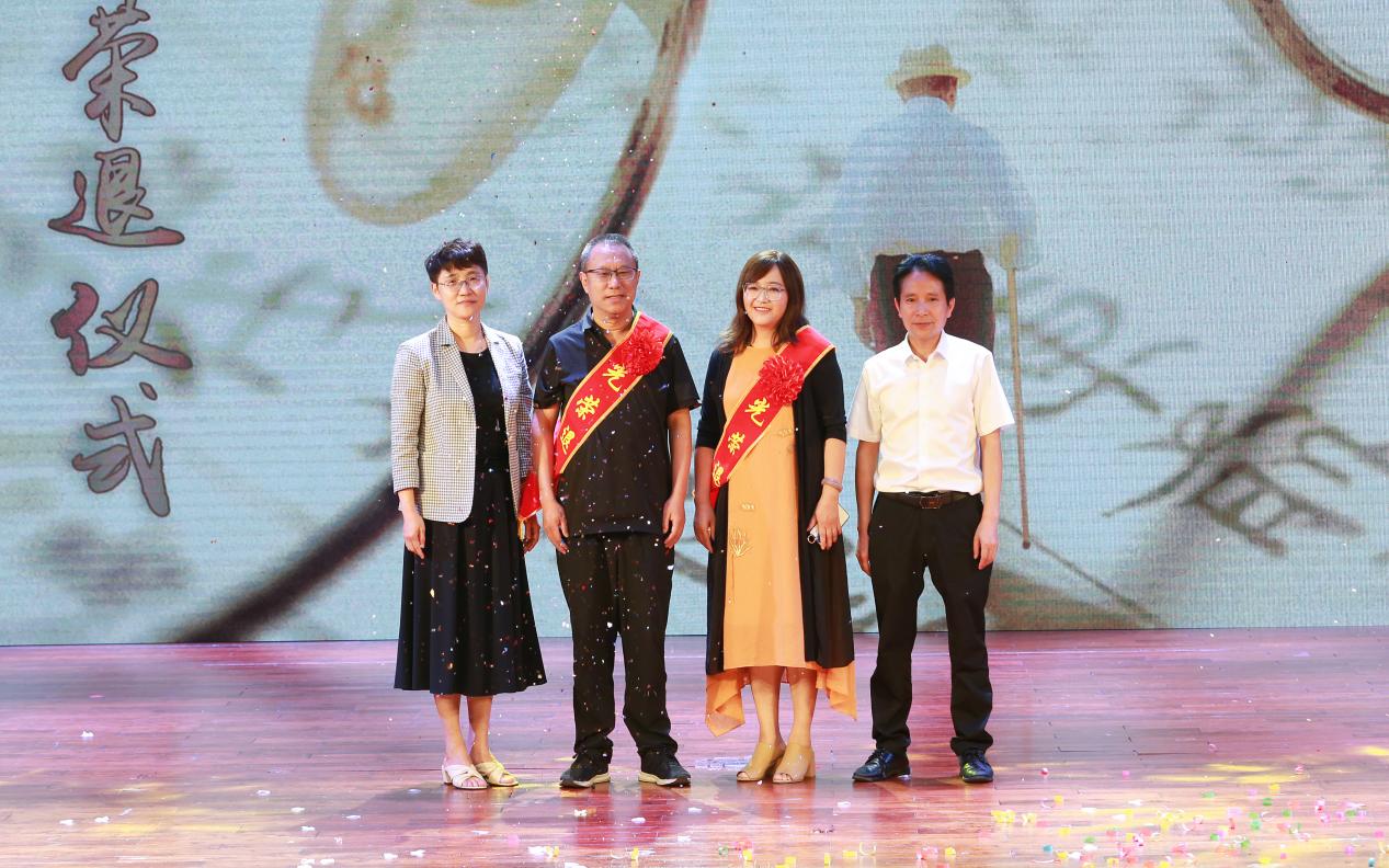 在晚会的最后一个篇章里,举行了我院退休教师荣退仪式。现场播放了我院师生们为汪晓谦老师、申开琼老师准备的祝福、感谢视频,我院党委书记石明昌老师、院长冷传莉教授为两位老师佩戴光荣花。
