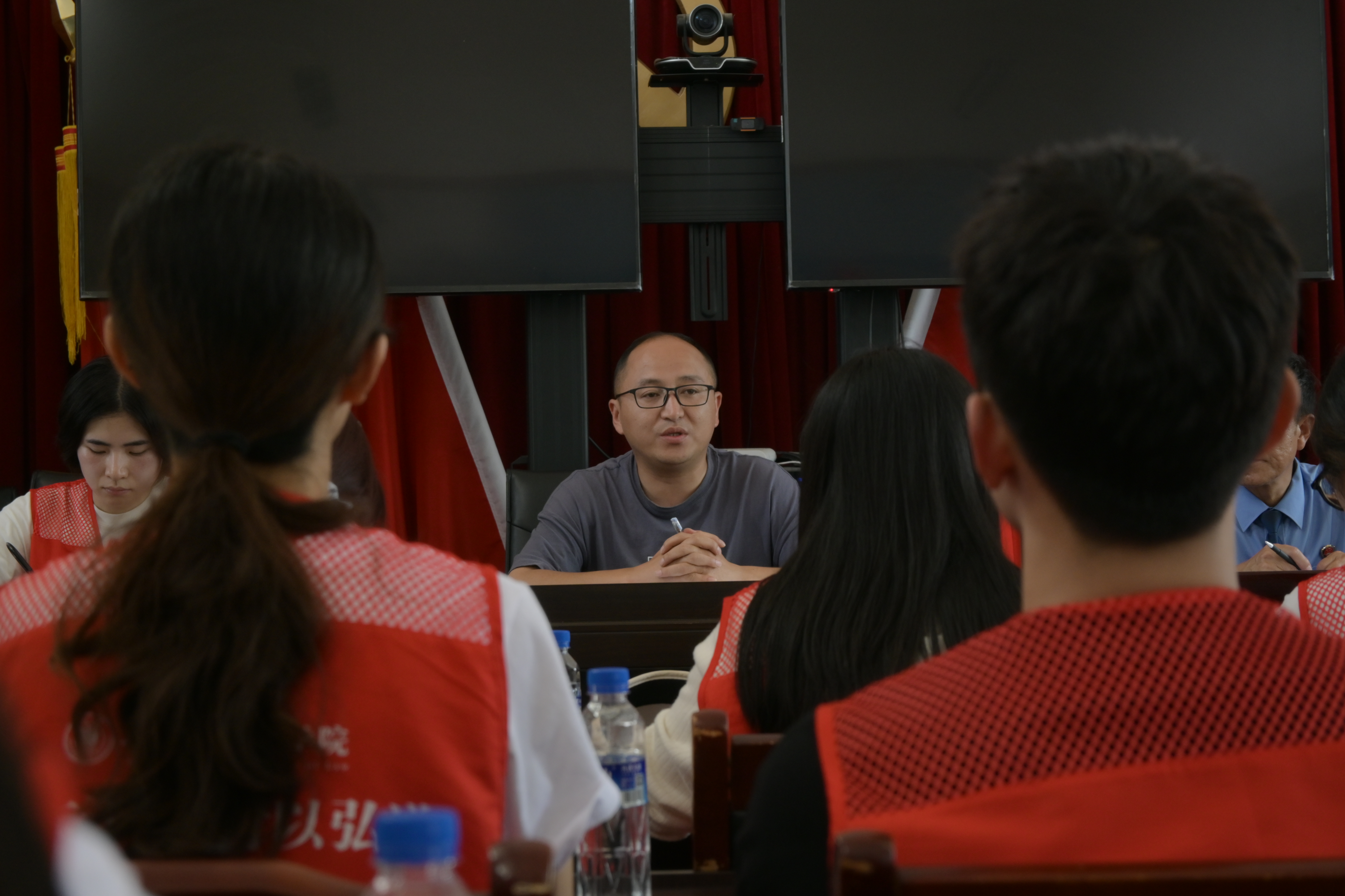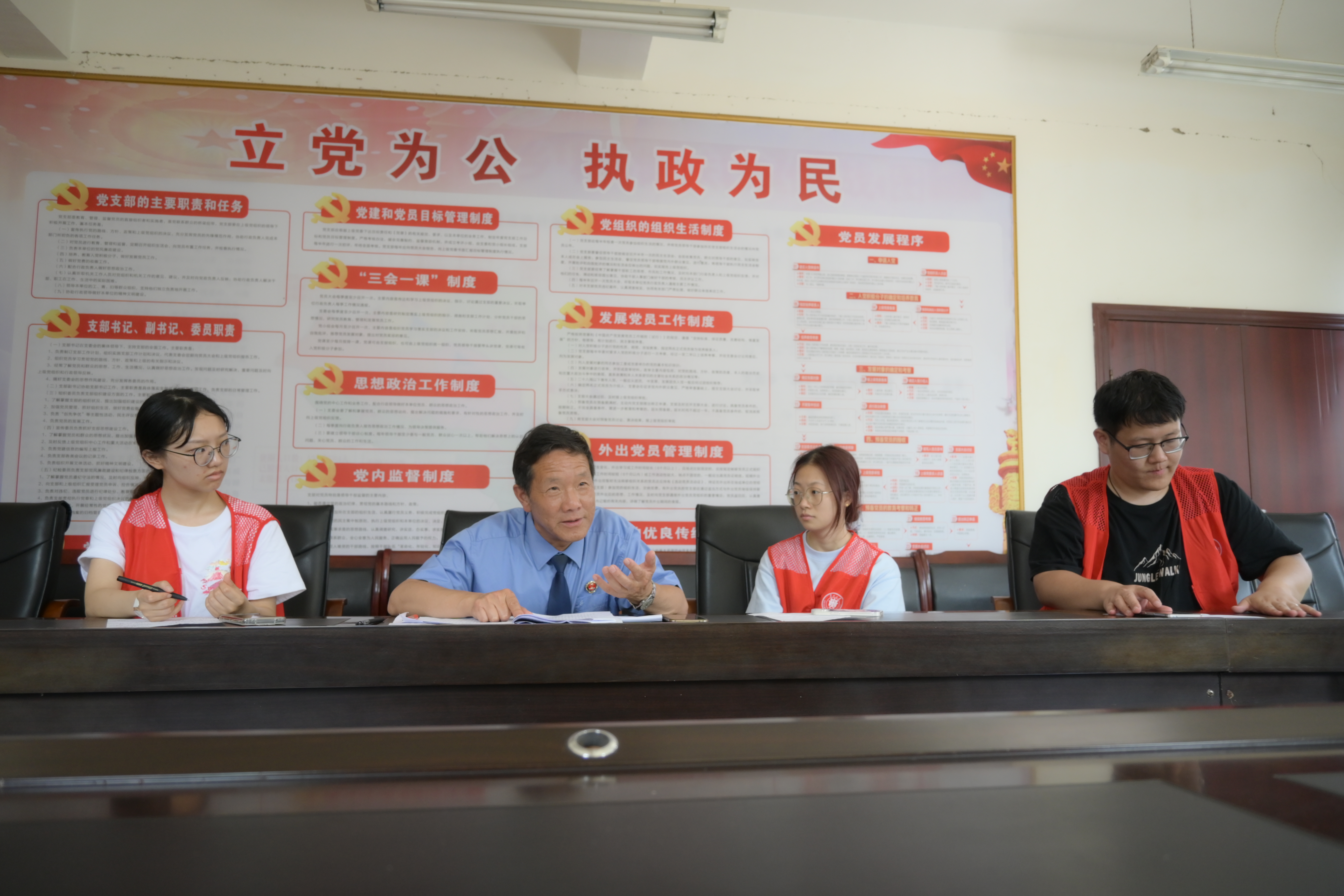 参观之后,在大街乡党委副书记冶治权的主持下,与实践队开展了座谈会。座谈会有蔣仕祥检察官、王戡检察官、大街乡派出所所长刘勇等人员参加。该座谈会介绍了大街乡概况,安全事项,以及回答同学们针对大街乡社会实践相关问题。