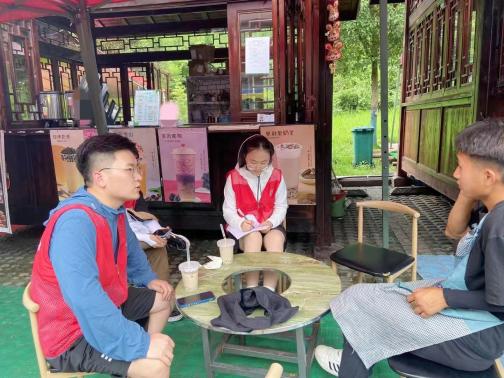 图为实践队员与商户老板交流
