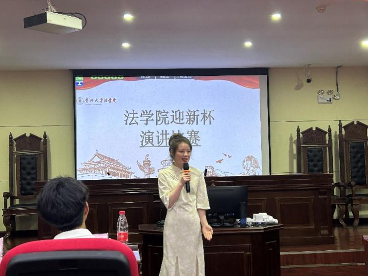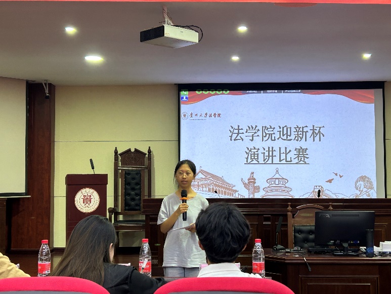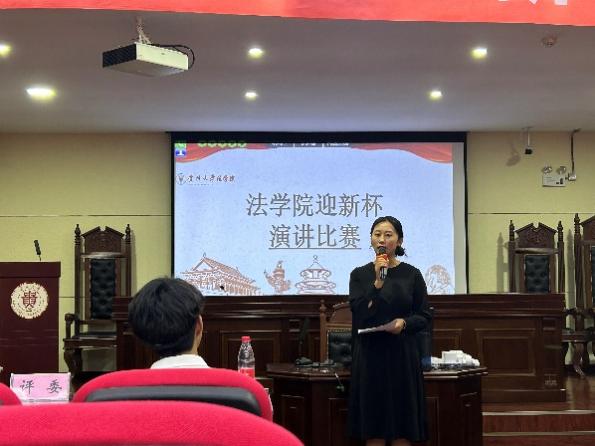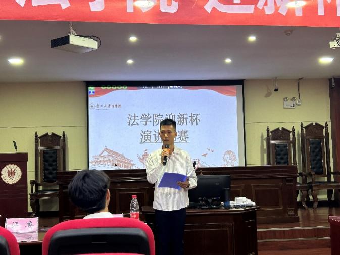 金风送爽,叠翠流金。9月22日,为深入学习习近平新时代中国特色社会主义思想,进一步弘扬社会主义核心价值观,全面贯彻党的二十大精神,我院首届“迎新杯”演讲比赛在慎思楼模拟法庭顺利举办。法理学方向博士研究生朱奎,民商法方向硕士研究生石鑫鉴以及贵州大学演讲与口才协会赵梓钧为本次比赛评委,本次比赛分为新生与非新生两个赛道,共19名学生参加。