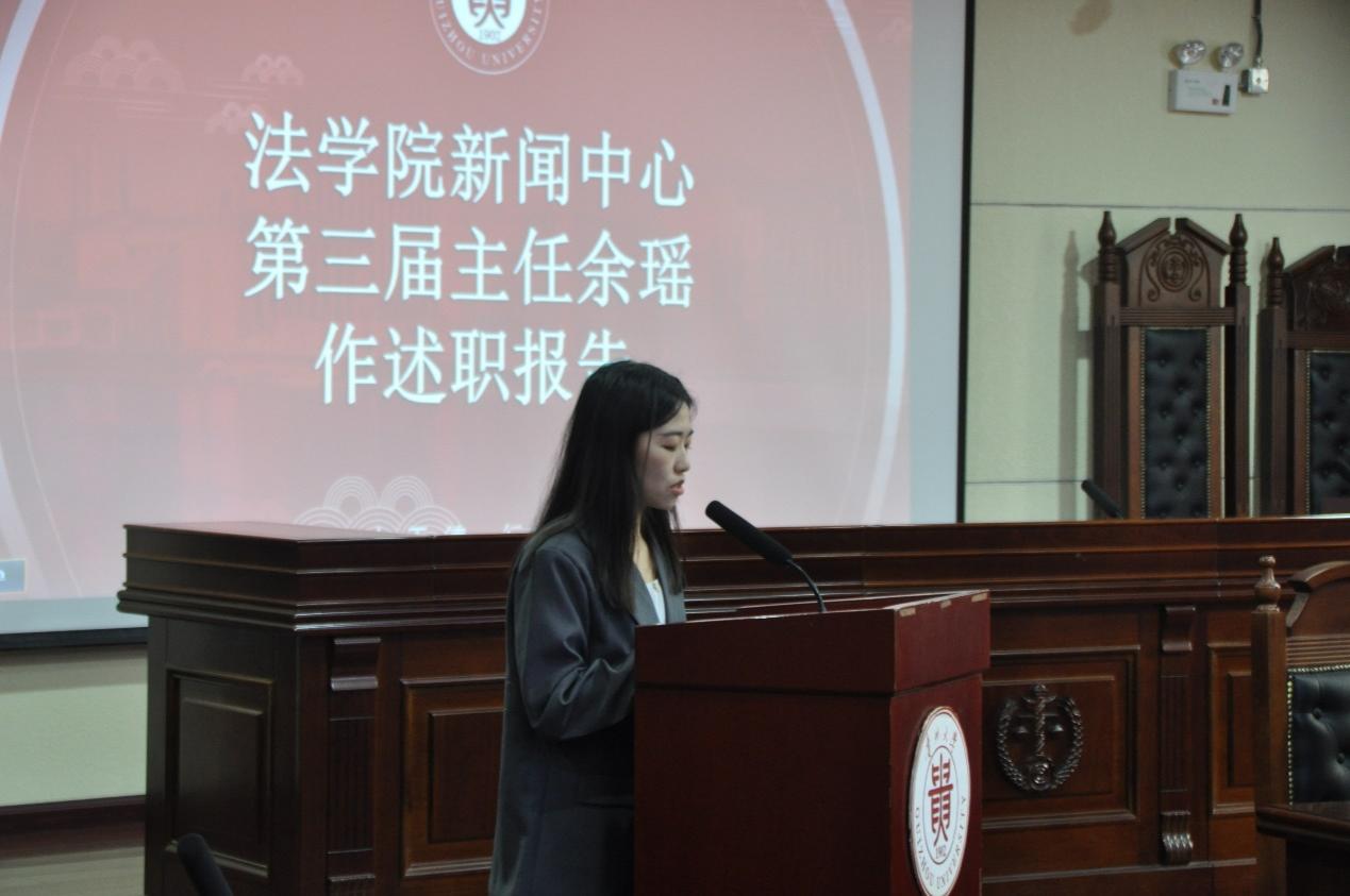 为确保学生组织的持续发展和稳定运行,进一步增强学生组织凝聚力战斗力向心力,2023年10月24日,我院在模拟法庭阶梯教室组织召开金沙集团1862cc成色团委、研究生团总支、新闻中心以及易班工作站4个学生组织的换届大会。我院团委副书记谭璐、我院辅导员崔永霞、我院新闻中心指导老师金鑫出席会议。我院团委、研究生团总支、新闻中心及易班工作站4个学生组织的干部与成员参加会议。