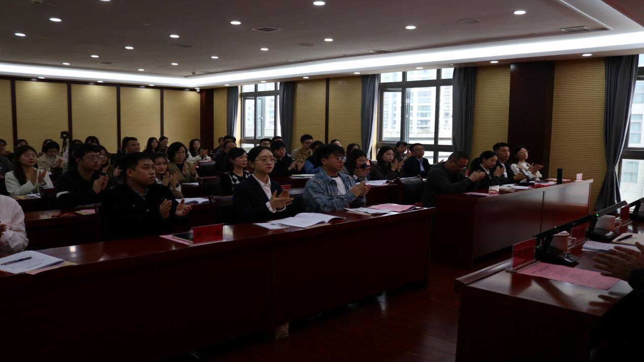 2024 年 3 月 27 日,我院2022 级法律硕士9名研究生在孙志煜副院长带领下赴国家法官学院贵州分院参加了由贵州省高级人民法院组织的实习生见面会。省法院政治部副主任、二级巡视员张志斌,省法院政治部人事处处长、一级调研员蒋炜以及接收实习生各部门负责人、各高校师生代表参加了此次见面会。