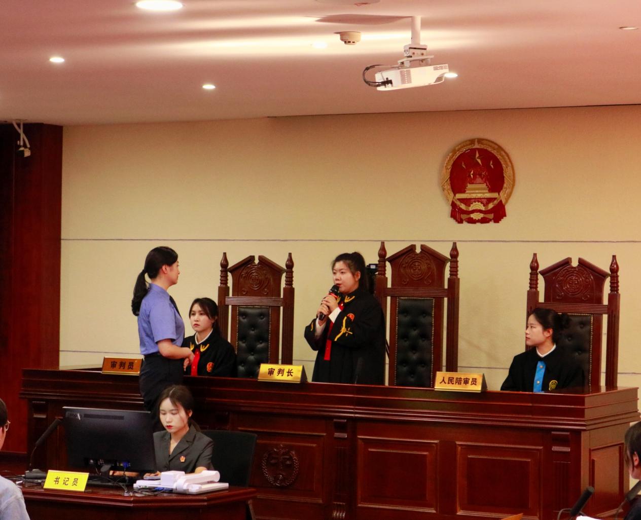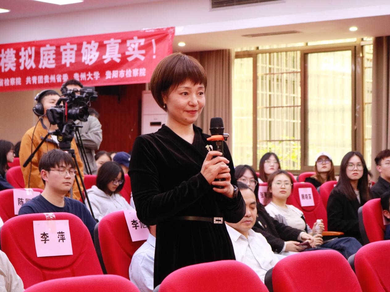 以贵州检察机关办理的真实知识产权案例为蓝本,我院学生沉浸式扮演法庭角色,真实还原法庭审判过程。通过围绕王洋一家贩卖盗版书籍侵犯他人著作权展开,在“案件审理”过程中,审判长对争议焦点进行了有针对性的提问,通过法庭调查、法庭辩论、被告人陈述等环节,最终当庭判决被告犯构成侵犯著作权罪。