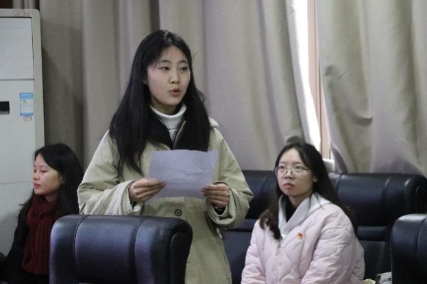 预备党员代表韩艾可进行发言。她通过个人成长经历表达自己对党的深厚感情和对党的崇高理想的认同。韩艾可同学表示,作为一名青年人,希望通过加入中国共产党来实现自身价值,为社会贡献自己的力量。党员不仅是一种荣誉,更是一种责任和使命。