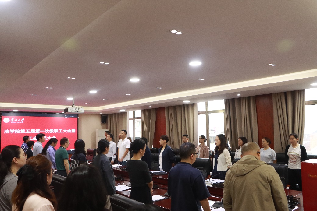 会议伊始,全体起立,奏唱国歌,气氛庄严肃穆,为大会拉开序幕。