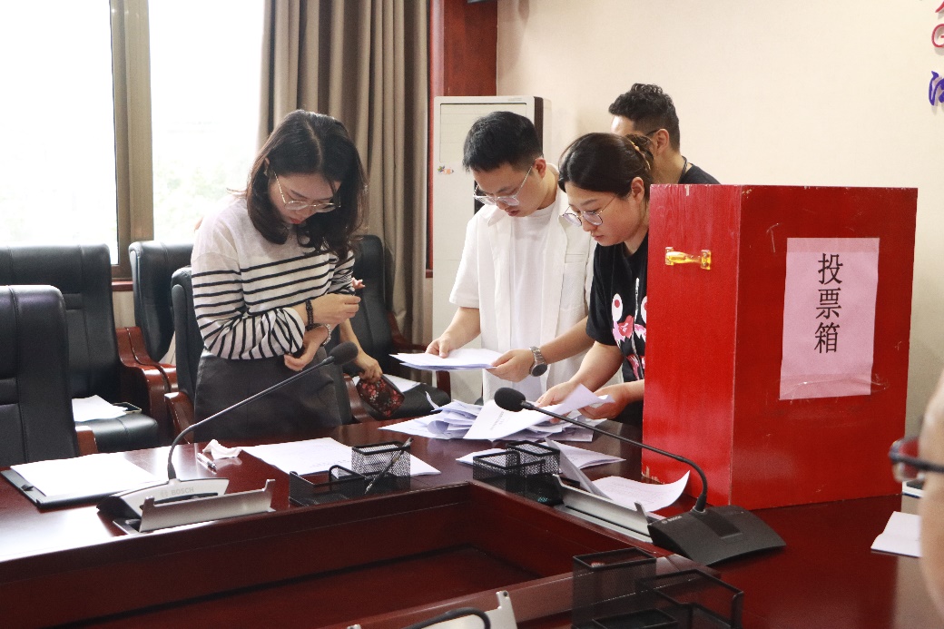 第七项议程进入选举环节,通过民主投票,阮志群、刘月凤、杜浩、张贵湘、谭璐五位老师当选为我院第五届分工会委员会委员。
